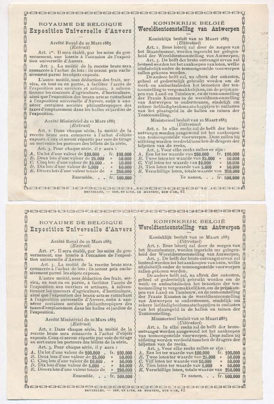 Belgium 1885. Lottószelvény (2x) sorszámkövetők T:II-