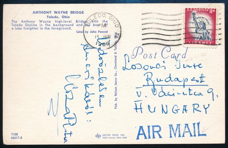 Leírás: 1962 Kozma István (1939-1970) olimpiai bajnok birkózó aláírása Amerikából hazaküldött képeslapon