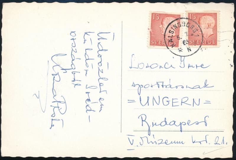 Leírás: Kozma István (1939-1970) olimpia bajnok birkózó saját kézzel írt képeslapja / Olympic champion HUngarian wrestler's autograph postcard