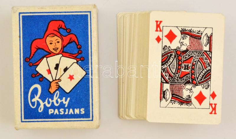 Boby lengyel kisméretű pasziánsz kártyapakli, saját dobozában https://www.darabanth.com/hu/321-Gyorsarveres/321.0/Festmeny-mutargy-papirregiseg-egyeb/Bolhapiac~500011/Boby-lengyel-kismeretu-pasziansz-kartyapakli-sajat-dobozaban~II1780140