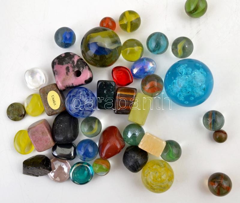 Kisebb és nagyobb üveggolyók, féldrágakövek, 43 db https://www.darabanth.com/hu/321-Gyorsarveres/321.0/Festmeny-mutargy-papirregiseg-egyeb/Bolhapiac~500011/Kisebb-es-nagyobb-uveggolyok-feldragakovek-43-db~II1775901