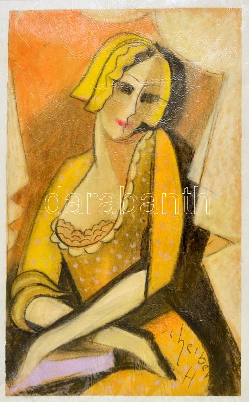 Leírás: Scheiber jelzéssel: Pöttyös ruhás lány. Pasztell, papír, 40×25 cm