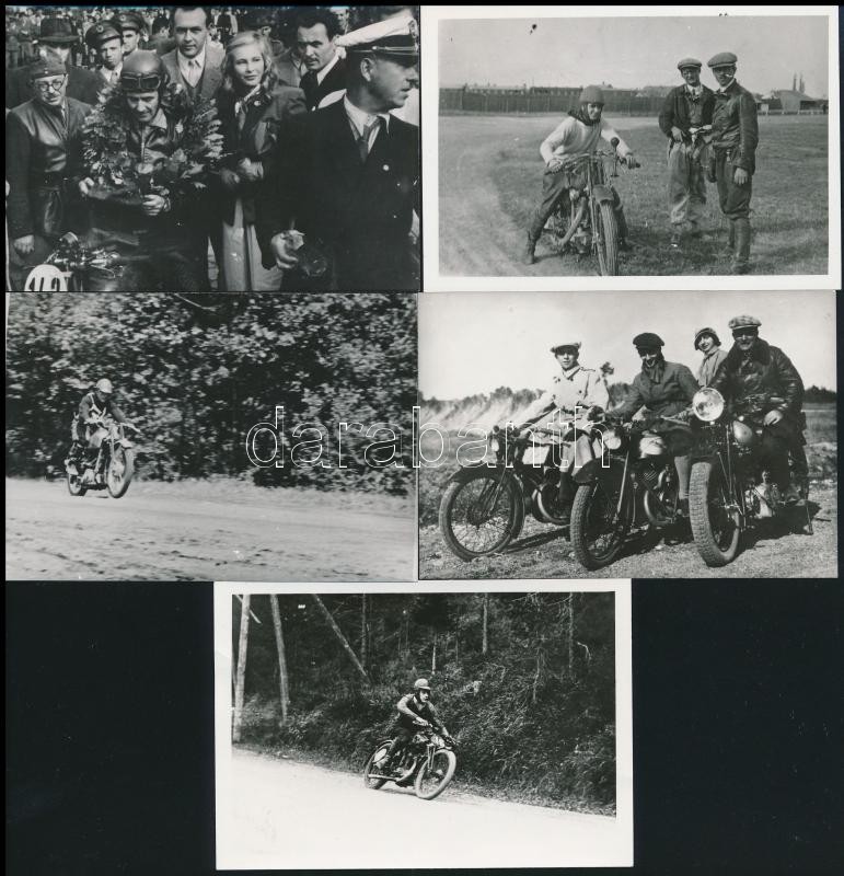 cca 1931-1948 Motorversenyek és motorversenyzők: Fergus Anderson (1909-1956) brit motorversenyző , Zamecsnik Tivadar, stb., 5 db fotó, hátoldalon feliratozva, utólagos előhívás, 6,5×8,5 cm