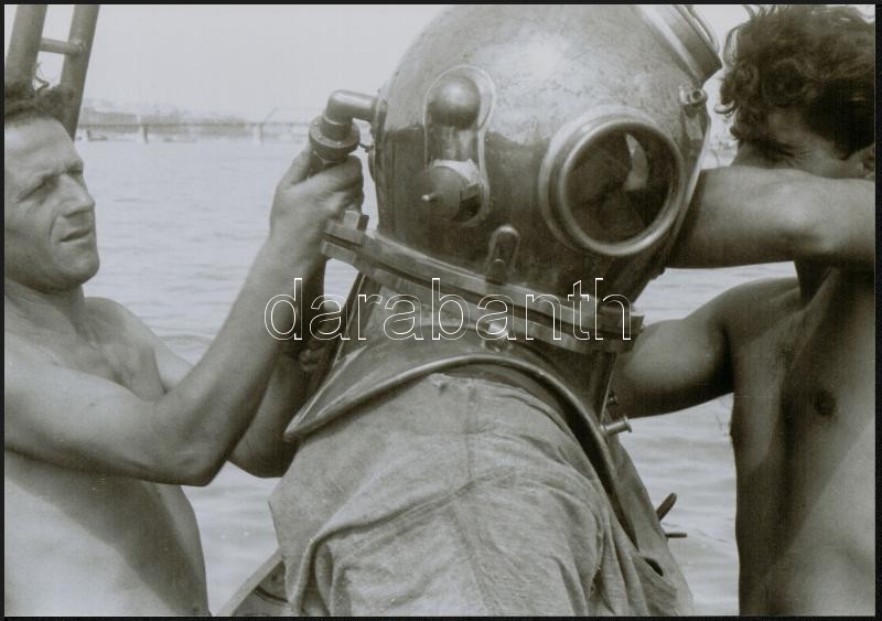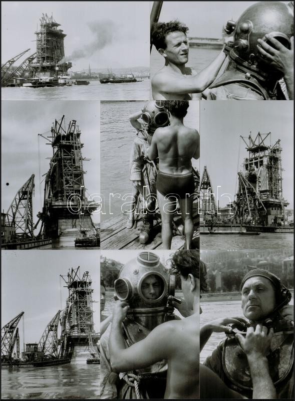 cca 1948 Budapest, a Lánchíd újjáépítésének kezdetén (az egyik felvétel hátterében a Kossuth híd), 9 db vintage negatívról készült mai nagyítás, 15x10 cm és 18x25 cm