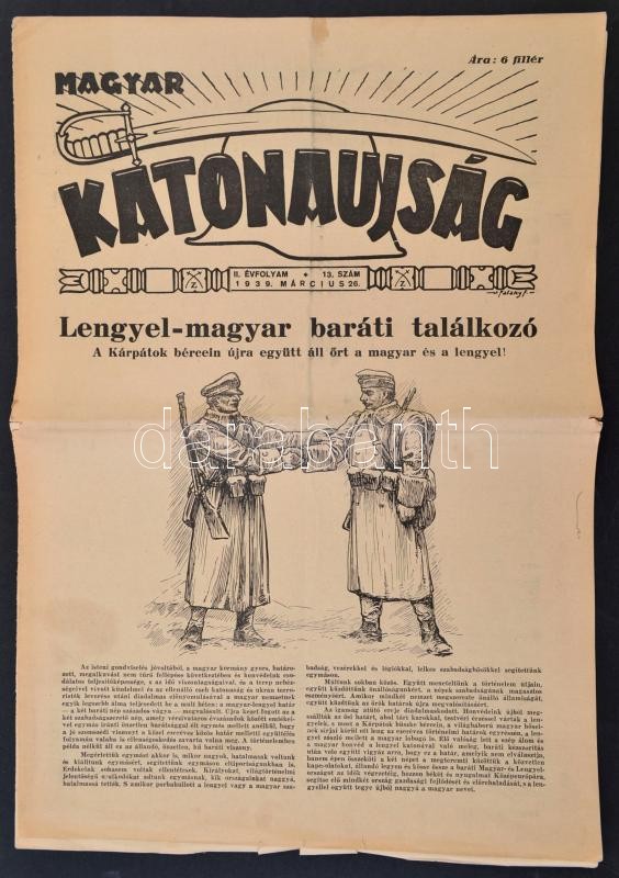 1939 Magyar Katonaújság. II. évf. 13. szám., 1939. március 26., "Lengy... https://www.darabanth.com/hu/321-Gyorsarveres/321.0/Festmeny-mutargy-papirregiseg-egyeb/Militaria~500027/1939-Magyar-Katonaujsag-II-evf-13-szam-1939-marcius-26-Lengyel-magyar-barati-talalk~II1776736