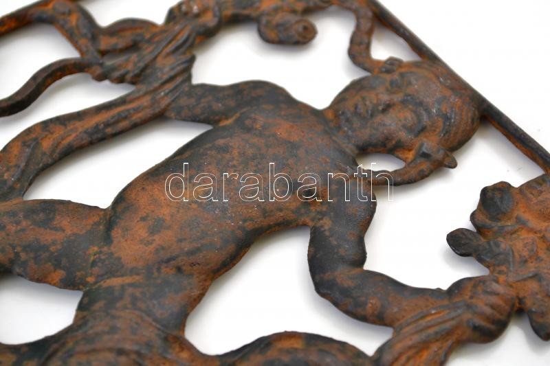Leírás: Lauchammer hónapokat bemutató vas falikép (3db), jelzett, rozsdás, 14,5×14,5 cm ( 3×)