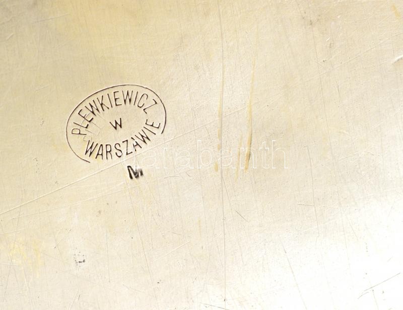 cca 1920 Plewkiewicz Warsawie, ezüstözött réz tálca, kopott, jelzett, ... https://www.darabanth.com/hu/321-Gyorsarveres/321.0/Festmeny-mutargy-papirregiseg-egyeb/Mutargyak-antikvitas~500004/cca-1920-Plewkiewicz-Warsawie-ezustozott-rez-talca-kopott-jelzett-gravirozott-44C39726-cm~II1778402