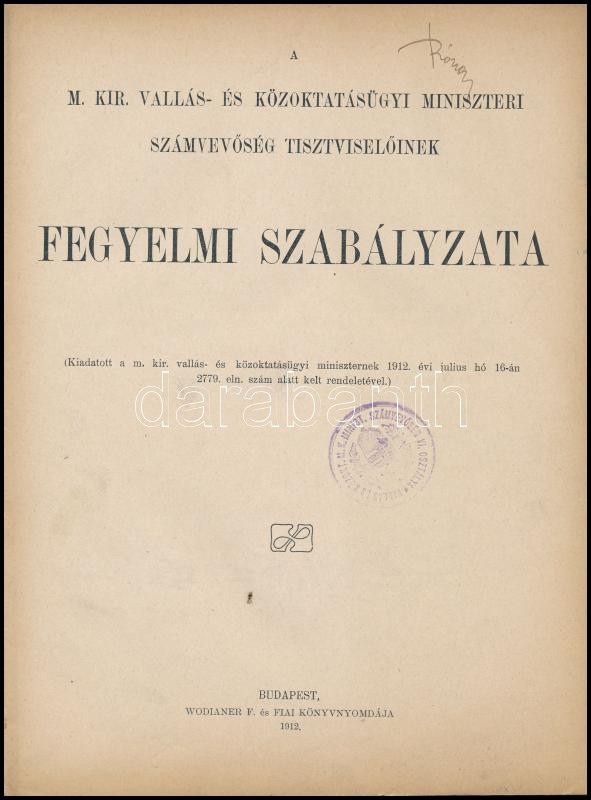 1912 A M. Kir. Vallás- és Közoktatásügyi Miniszteri Számvevőség tisztv... https://www.darabanth.com/hu/321-Gyorsarveres/321.0/Festmeny-mutargy-papirregiseg-egyeb/Nyomtatvanyok~500029/1912-A-M-Kir-Vallas-es-Kozoktatasugyi-Miniszteri-Szamvevoseg-tisztviseloinek-fegyelmi-sz~II1781845