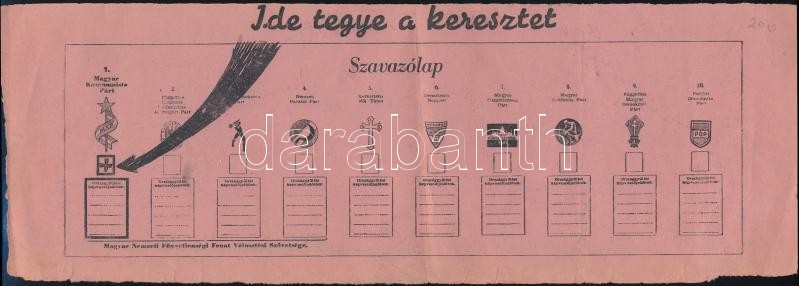 1947 A választási körzetről szóló kitöltetlen értesítő, túloldalán sza... https://www.darabanth.com/hu/321-Gyorsarveres/321.0/Festmeny-mutargy-papirregiseg-egyeb/Nyomtatvanyok~500029/1947-A-valasztasi-korzetrol-szolo-kitoltetlen-ertesito-tuloldalan-szavazolapot-imital~II1762851