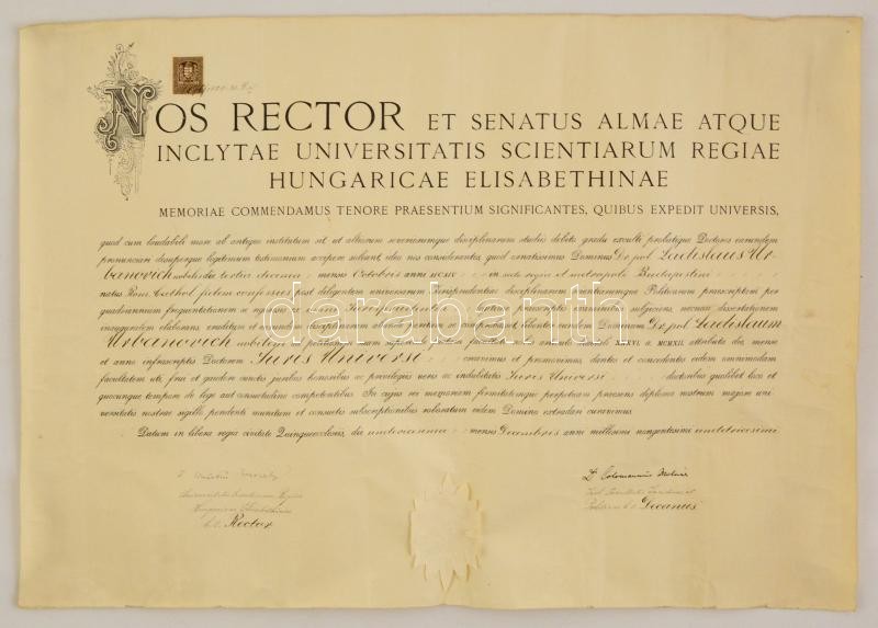 Leírás: 1929 Jogi diploma. Weszely és Molnár aláírásokkal