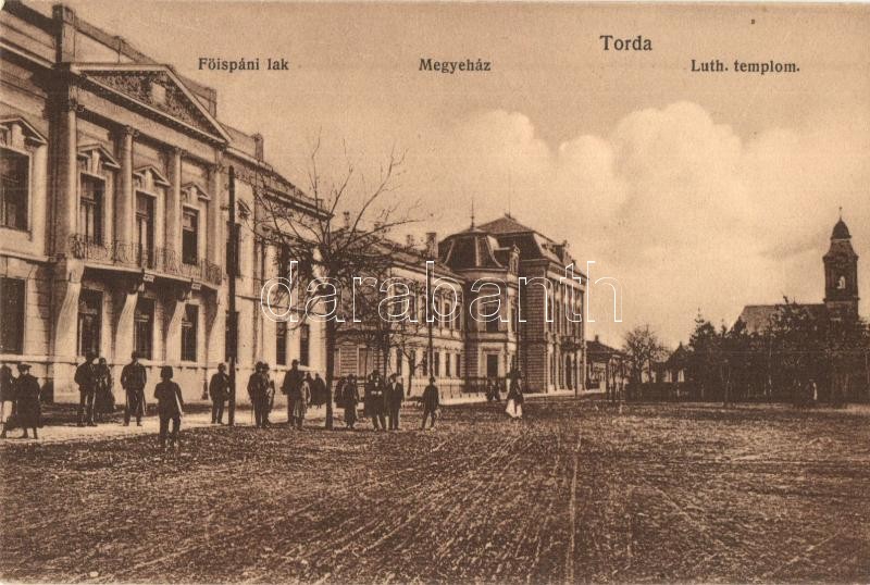 Torda, Turda; Főispáni lak, Megyeház, Evangélikus templom. Kiadja Füss... https://www.darabanth.com/hu/321-Gyorsarveres/321.0/Kepeslapok/Erdely~1500008/Torda-Turda-Foispani-lak-Megyehaz-Evangelikus-templom-Kiadja-Fussy-Jozsef-county-hall-~II1779521