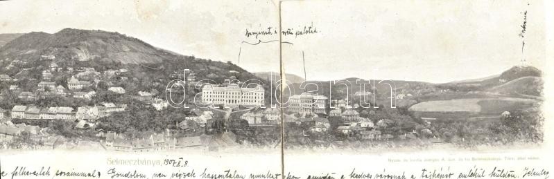 Leírás: Selmecbánya, Schemnitz, Banska Stiavnica; kihajtható panorámalap. Nyom. és kiadta Joerges A. özb. és fia / foldable panoramacard (r)