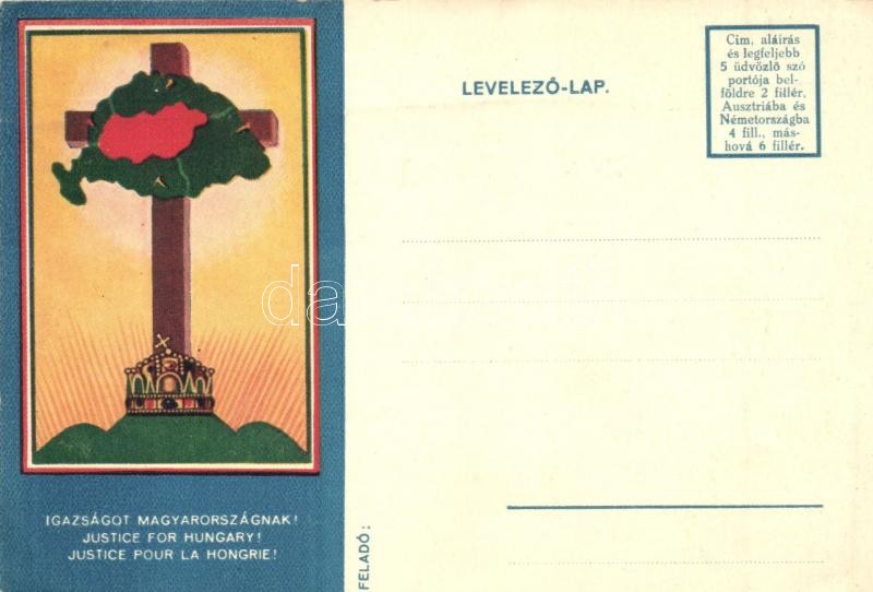 Leírás: Igazságot Magyarországnak! / Hungarian irredenta art postcard