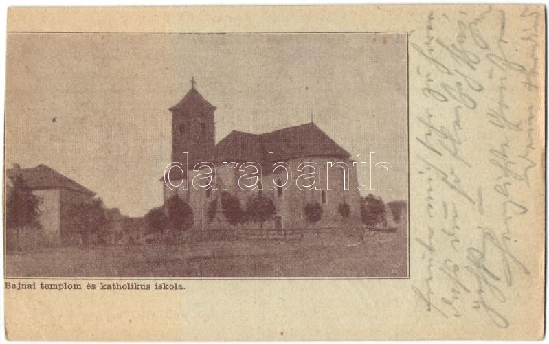 Leírás: Bajna, Római katolikus templom és iskola (vágott / cut)