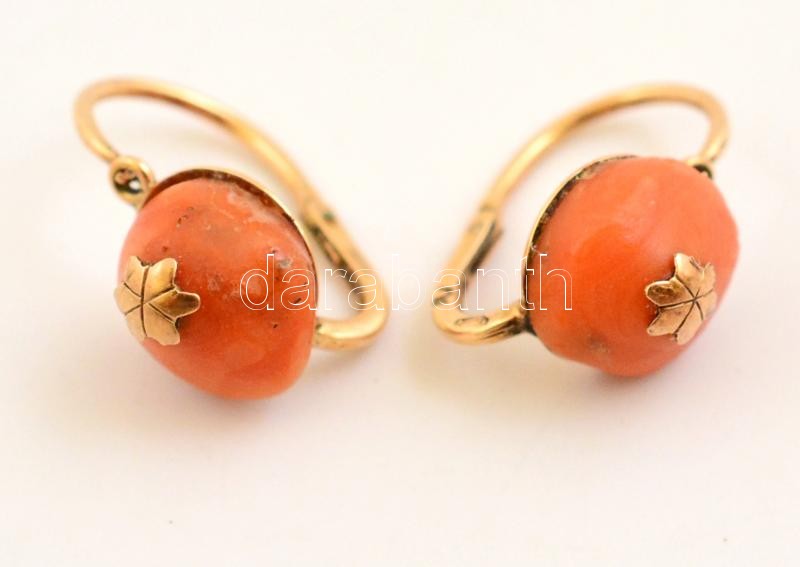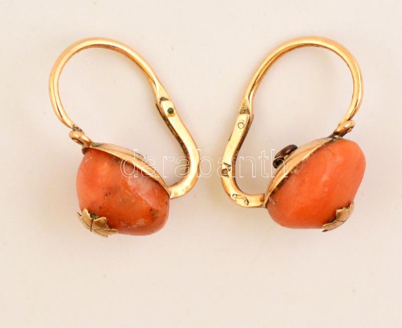 Arany (Au ) 14 K fülbevaló, korall kövekkel, jelzett, bruttó:2,1 g https://www.darabanth.com/hu/321-Gyorsarveres/321.0/Nemesfem-Disztargyak-Orak-es-Ekszerek/Nemesfem-Disztargyak-Orak-es-Ekszerek~500031/Arany-Au-14-K-fulbevalo-korall-kovekkel-jelzett-brutto2-1-g~II1776214