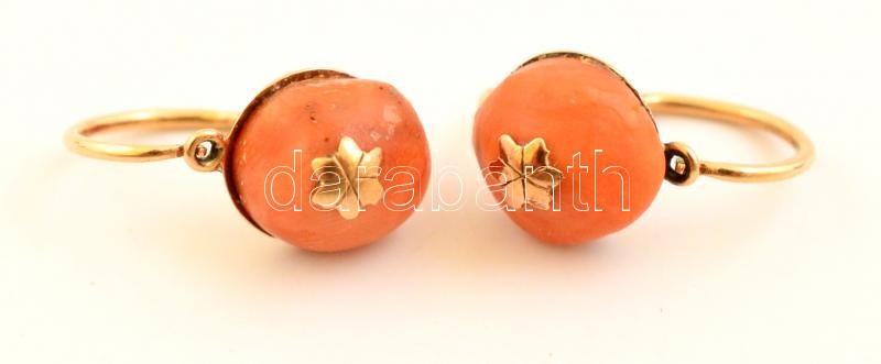 Leírás: Arany (Au ) 14 K fülbevaló, korall kövekkel, jelzett, bruttó:2,1 g