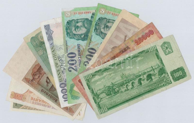 10db-os vegyes bankjegy tétel, közte Magyarország, Ghána, Belgium, Kanada, Etiópia és Indonézia T:III,III- 10pcs of various banknotes, including Hungary, Ghana, Belgium, Canada, Ethiopia and Indonesia C:F,VG