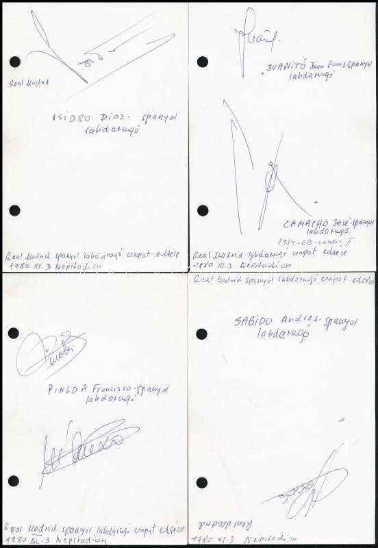 Leírás: 1980 A Real Madrid 5 labdarúgójának aláírása (Juanito, Isidro, Camacho, Pineda, Sabido) 4 lapon