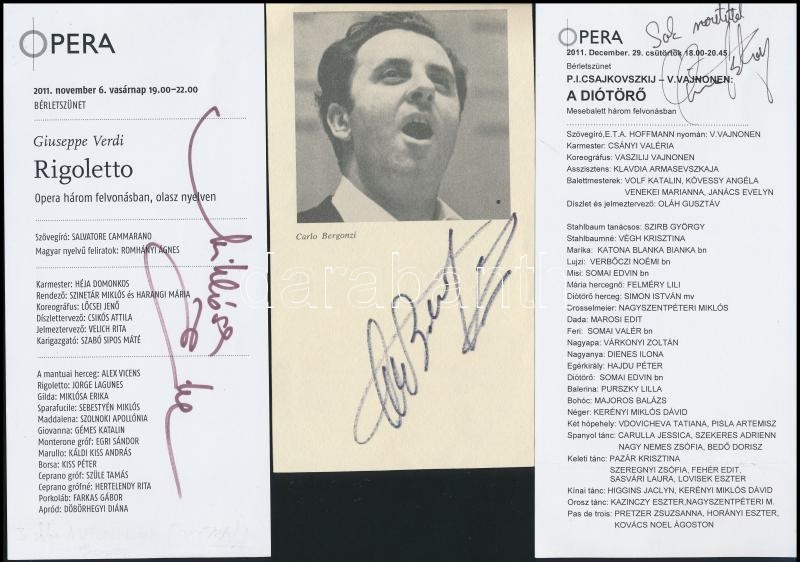Leírás: Opera műsorlapok aláírásokkal (Carlo Bergonzi, Miklósa Erika, stb.), 3 db