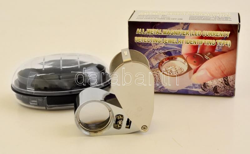 Leírás: 40x-es ékszerész nagyító fém testtel ledes és Uv világítással, új állapotban, eredeti dobozában / Brand new magnifier
