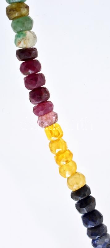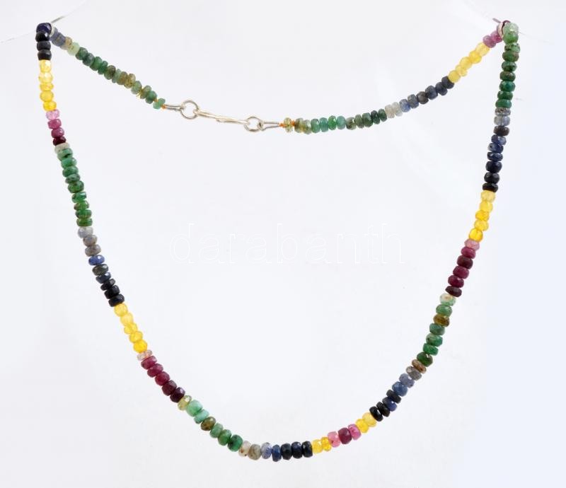 Leírás: Féldrágakövekből (zafír, smaragd) fűzött nyaklánc, jelzett ezüst(Ag) kapoccsal, h: 43 cm
