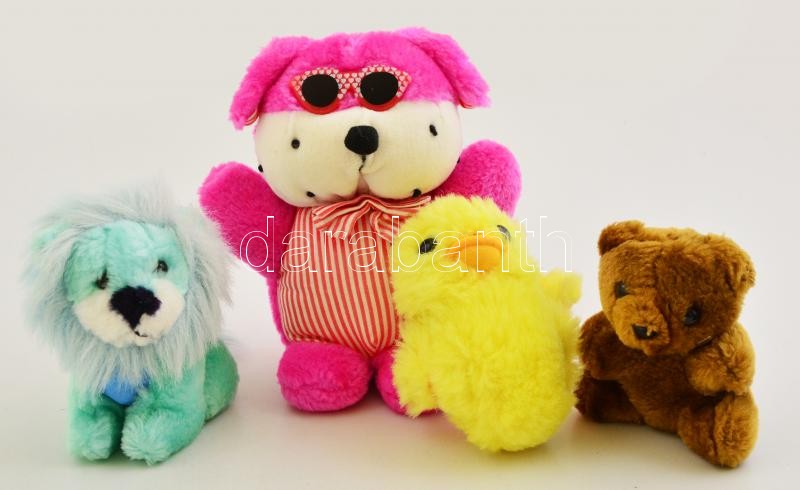 Leírás: Plüss játékok, 4 db, m: 10 és 18 cm közötti méretben