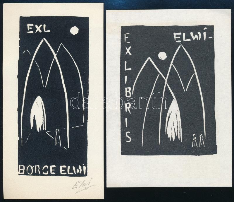 Leírás: Börge Elwi Carlson (1917-2001): 2 db ex libris. Linó, papír, egyik jelzett, 11×4 és 9×6 cm