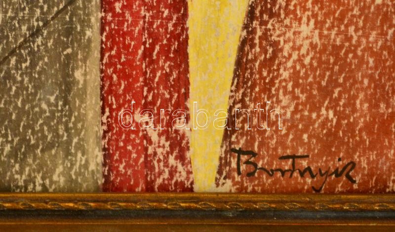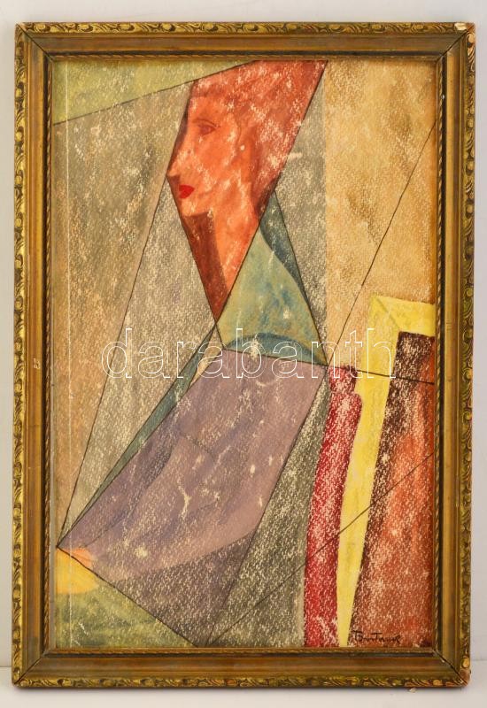 Leírás: Bortnyik jelzéssel: Női portré. Vegyes technika, papír, üvegezett keretben, 48×31 cm