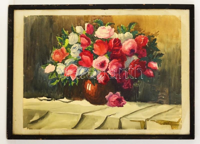 Csók jelzéssel: Asztali virágcsendélet. Akvarell, papír, üvegezett ker... https://www.darabanth.com/hu/322-Gyorsarveres/322.0/Festmeny-mutargy-papirregiseg-egyeb/Festmenyek-es-grafikak~500001/Csok-jelzessel-Asztali-viragcsendelet-Akvarell-papir-uvegezett-keretben-43C39762-cm~II1785136