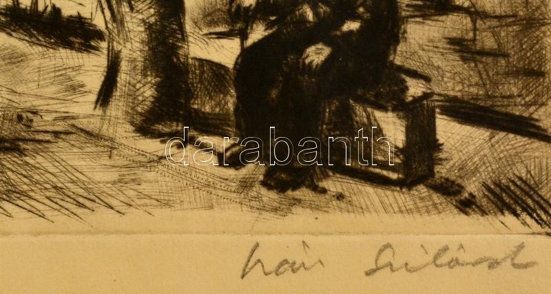 Leírás: Iván Szilárd (1912-1988): Falusi utca. Rézkarc, papír, jelzett, 29×37 cm