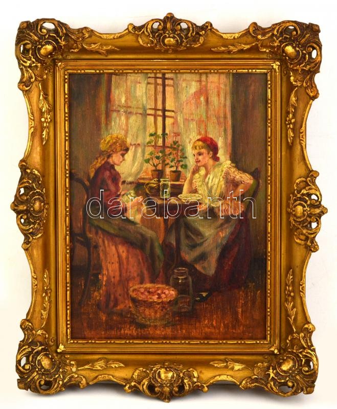 Jelzés nélkül: Barátnők. Olaj, falemez, keretben, 40×30 cm https://www.darabanth.com/hu/322-Gyorsarveres/322.0/Festmeny-mutargy-papirregiseg-egyeb/Festmenyek-es-grafikak~500001/Jelzes-nelkul-Baratnok-Olaj-falemez-keretben-40C39730-cm~II1782601