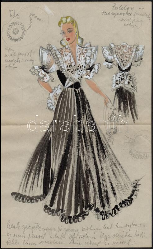 Jelzés nélkül: Divatrajzok. Vegyes technika, papír, pauszpapír, 25×16 ... https://www.darabanth.com/hu/322-Gyorsarveres/322.0/Festmeny-mutargy-papirregiseg-egyeb/Festmenyek-es-grafikak~500001/Jelzes-nelkul-Divatrajzok-Vegyes-technika-papir-pauszpapir-25C39716-es-34C39721-cm-kozott-plus~II1788291