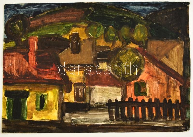 Leírás: Jelzés nélkül: Házak. Akvarell, papír, 32×46 cm