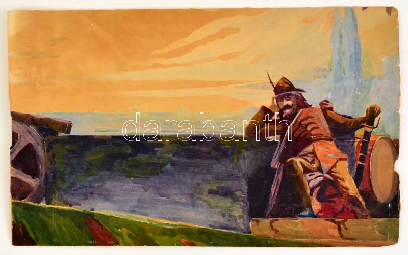Jelzés nélkül: Magyar vitéz a rónán, akvarell, karton, 34,5×55,5 cm https://www.darabanth.com/hu/322-Gyorsarveres/322.0/Festmeny-mutargy-papirregiseg-egyeb/Festmenyek-es-grafikak~500001/Jelzes-nelkul-Magyar-vitez-a-ronan-akvarell-karton-34-5C39755-5-cm~II1783685