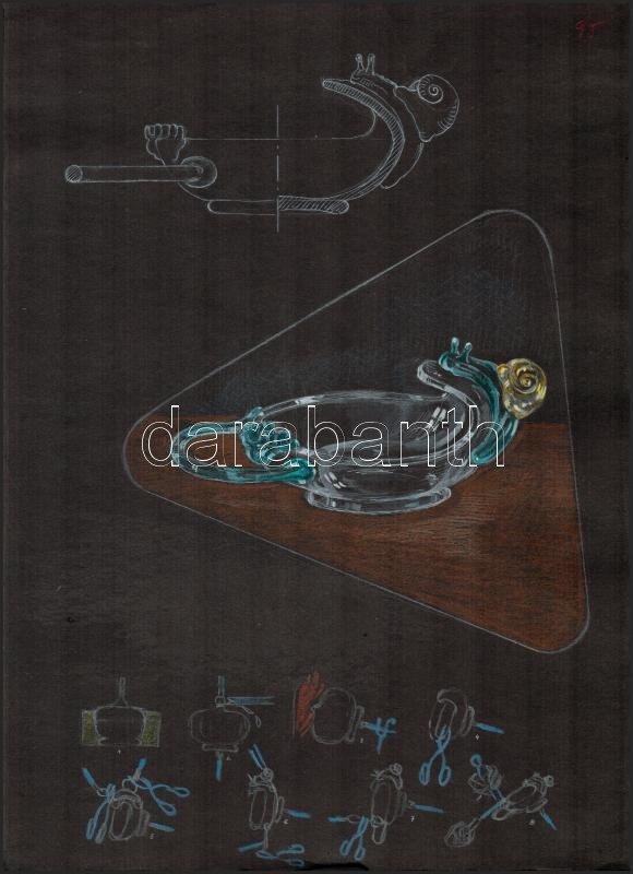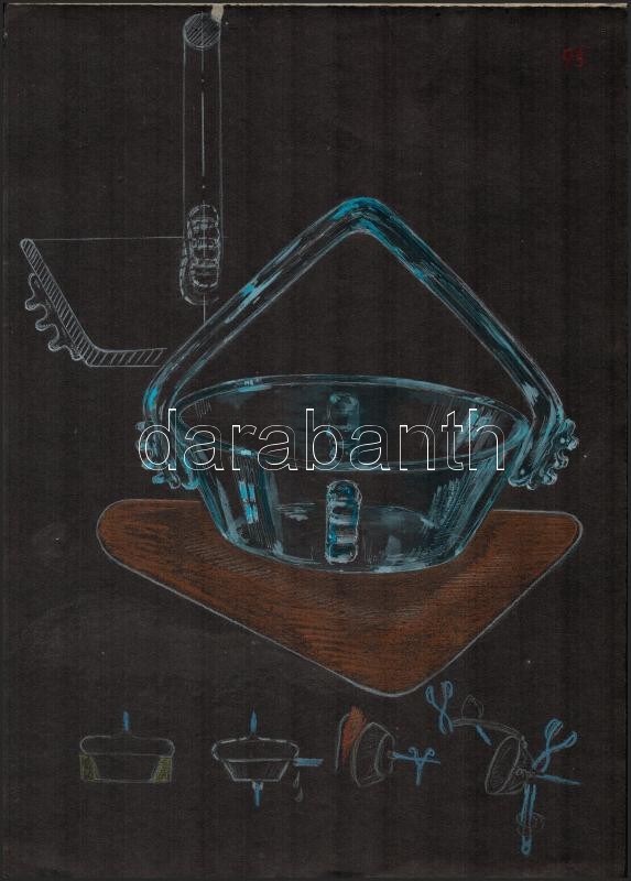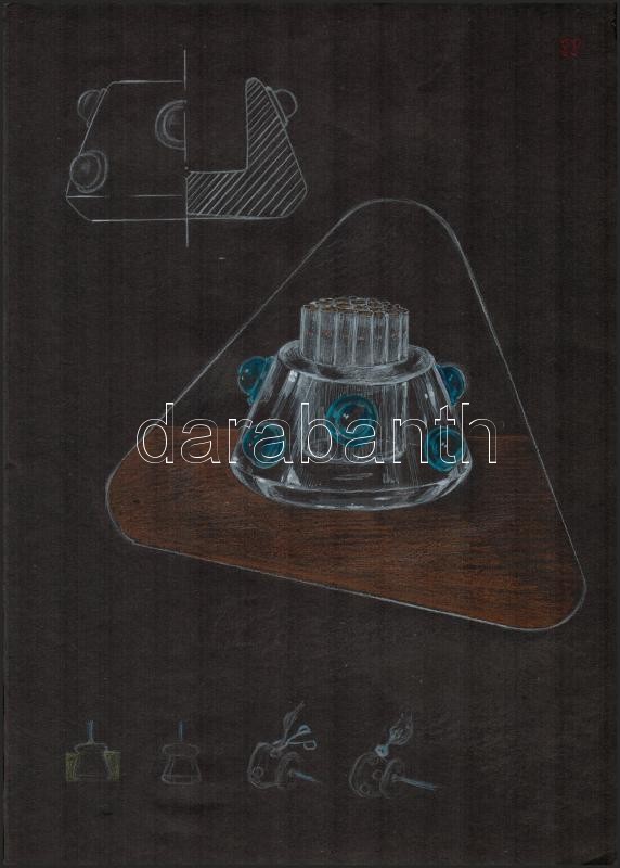 Leírás: Jelzés nélkül: Üveg dísztárgyak tervrajzai, 4 db. Vegyes technika, papír, 35×25 cm