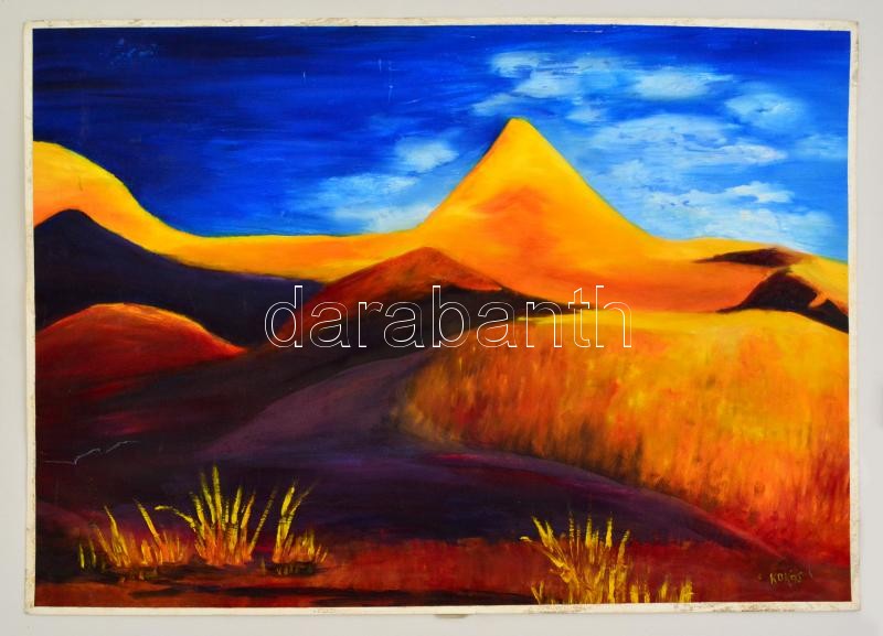 Leírás: Kokas jelzéssel: Dombos táj. Tempera, papír, 50×70 cm