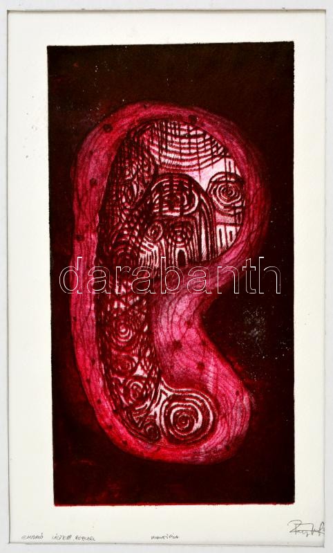Leírás: Olvashatatlan jelzéssel: Embrió, rézkarc, papír, jelzett, paszpartuban, 28,5×17 cm
