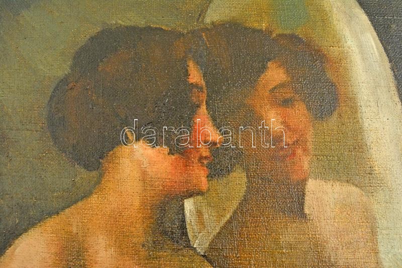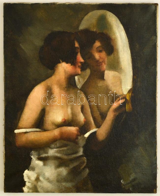 Leírás: Pettes József (1896-?): Tükrös félakt. Olaj, vászon, jelzett, 50×40 cm