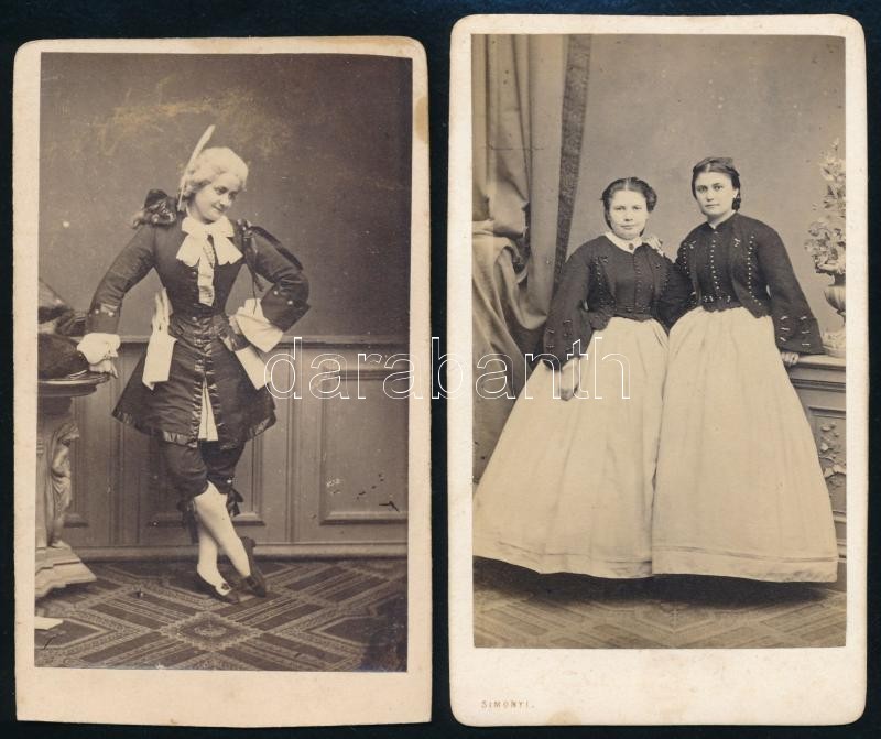 Leírás: cca 1857 Simonyi pesti fényirdájából 2 db vizitkártya méretű fénykép, 10,5x6 cm