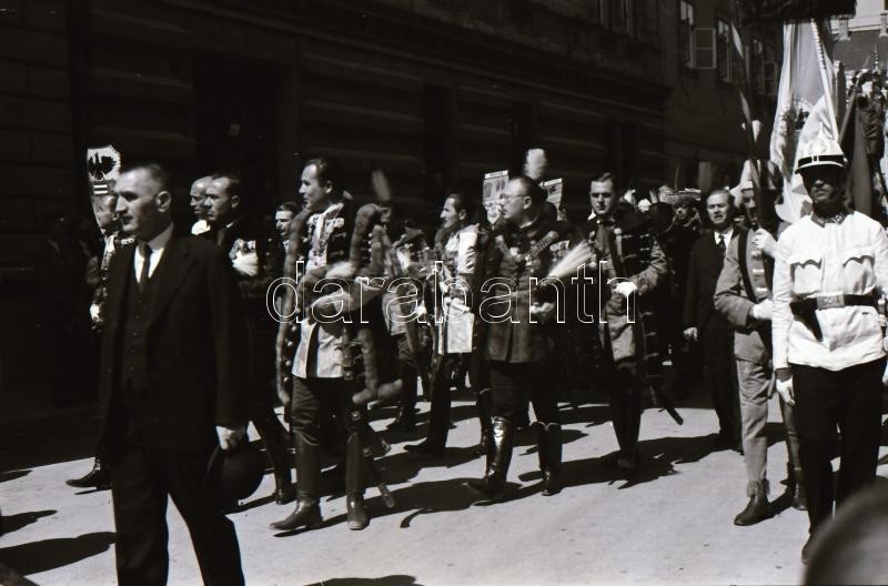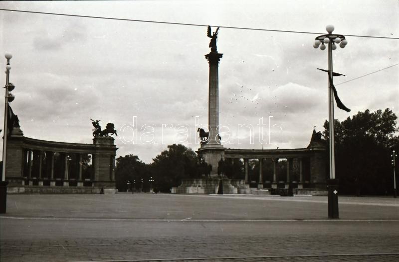 Leírás: cca 1930 Budapest felvonulás. irredenta emlékmű, Hősök tere és egyéb képek, 40 db városképes fotónegatív negatív tartóban.