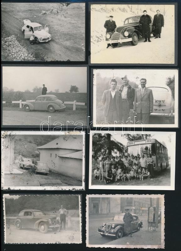Leírás: cca 1940-1970 23 db közlekedési fotó, autók, stb., egy részük hátulján feliratozva, különböző méretben