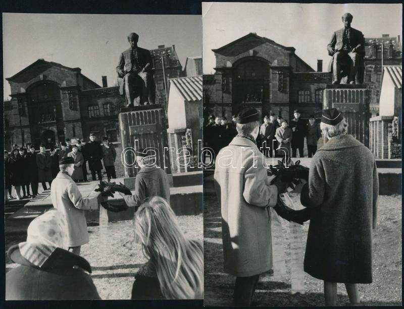 Leírás: cca 1940 Budapest, Batthyány tér, a Kölcsey-szobor koszorúzása, 2 db fénykép, 17×12 cm
