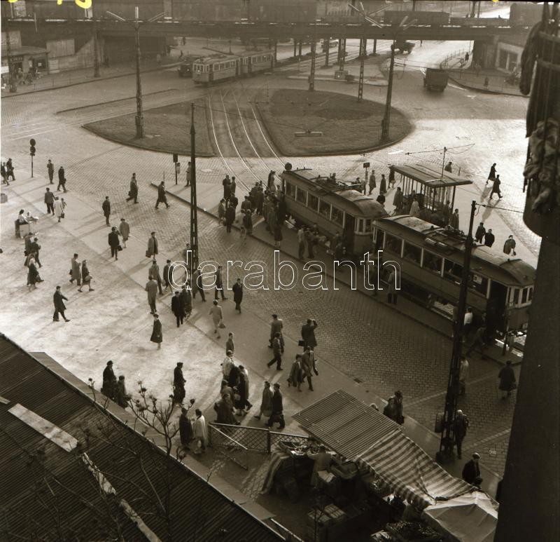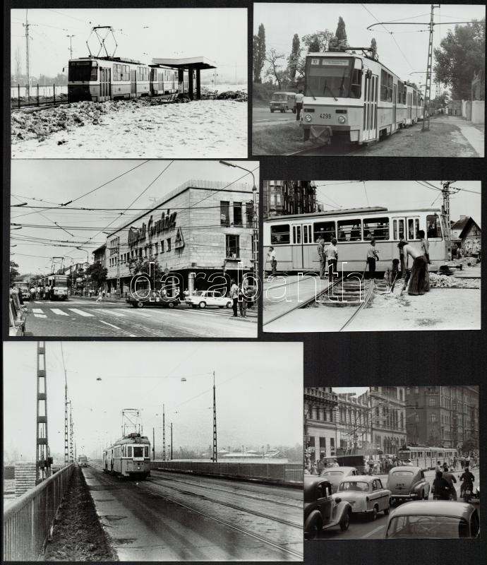 cca 1965 Villamosok Budapesten, 3 db szabadon felhasználható, vintage negatív, + 6 db vintage fénykép, (a negatívok és a papírképek között nincs összefüggés), 6x6 cm és 13x18 cm között