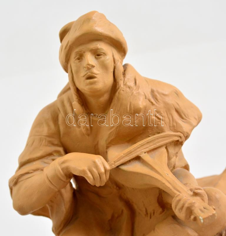 Leírás: Jelzés nélkül: Vándorzenész. Égetett anyag, kopás nyomokkal, m:21 cm, d:16 cm