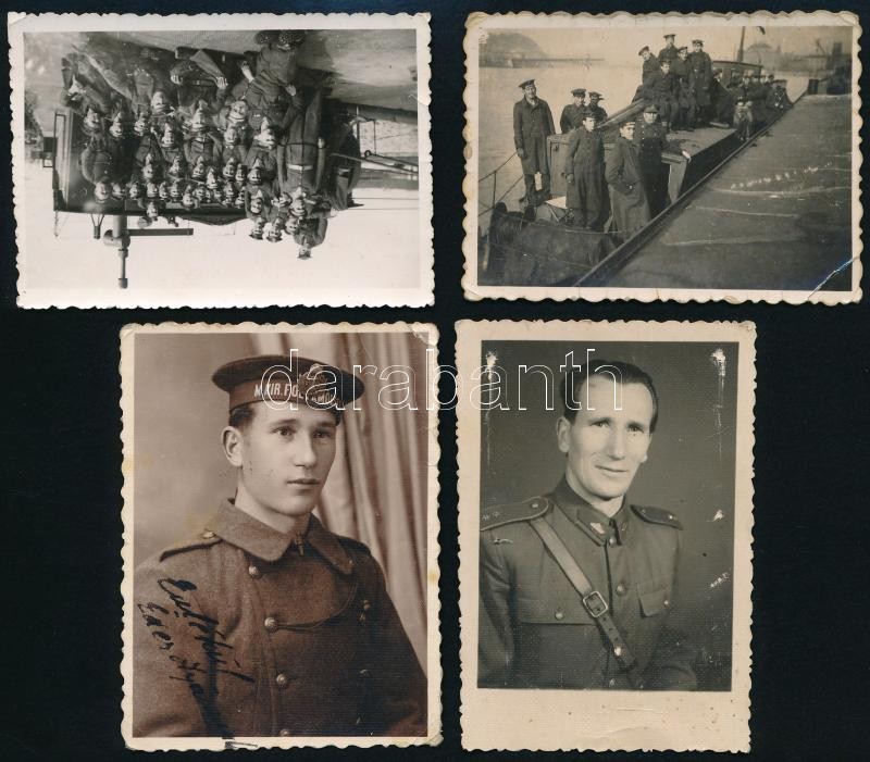 Leírás: cca 1930 4 db főleg folyamőröket ábrázoló fotó, egy részük hátulján feliratozva, különböző méretben