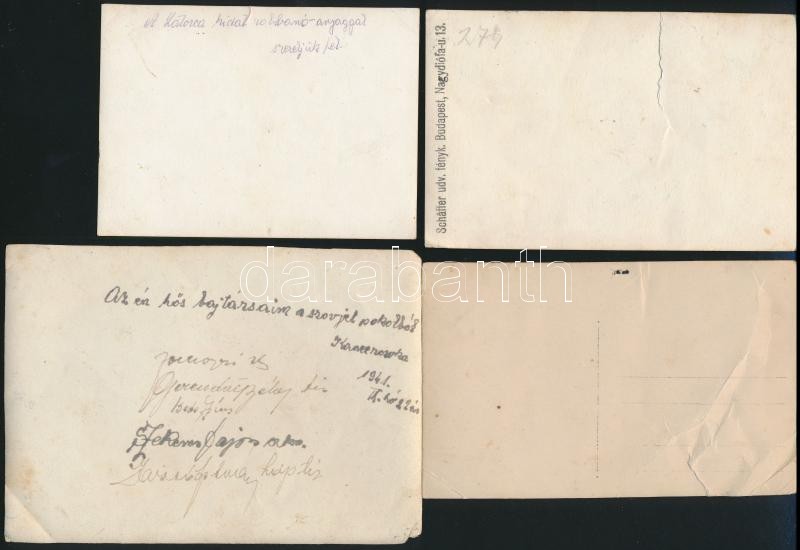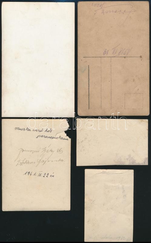 Leírás: cca 1940 9 db katonai fotó, egy részük hátulján feliratozva, különböző méretben
