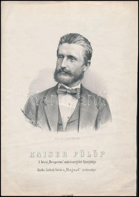 1866 Kaiser Fülöp, a bécsi "Hesperus" művészegylet igazgatój... https://www.darabanth.com/hu/322-Gyorsarveres/322.0/Festmeny-mutargy-papirregiseg-egyeb/Nyomtatvanyok~500032/1866-Kaiser-Fulop-a-becsi-Hesperus-muveszegylet-igazgatoja-29C39720-cm~II1785203