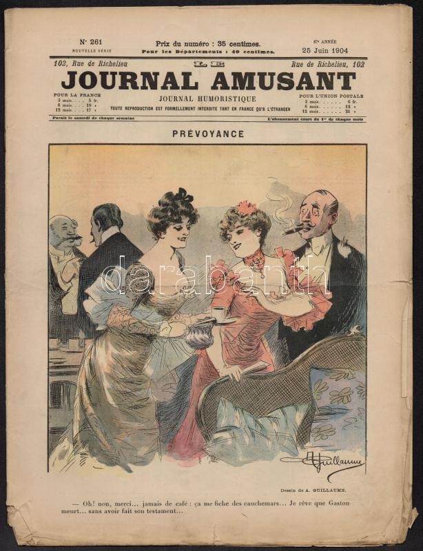 1904 Journal Amusant, journal humoristique Nr. 261 - francia nyelvű vi... https://www.darabanth.com/hu/322-Gyorsarveres/322.0/Festmeny-mutargy-papirregiseg-egyeb/Nyomtatvanyok~500032/1904-Journal-Amusant-journal-humoristique-Nr-261-francia-nyelvu-vicclap-illusztraciokkal-16~II1785344