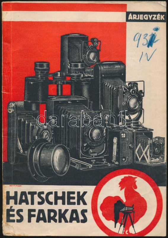 1931 Bp., Hatschek és Farkas Fényképészeti és Optikai Szaküzlet árjegy... https://www.darabanth.com/hu/322-Gyorsarveres/322.0/Festmeny-mutargy-papirregiseg-egyeb/Nyomtatvanyok~500032/1931-Bp-Hatschek-es-Farkas-Fenykepeszeti-es-Optikai-Szakuzlet-arjegyzeke-80p~II1784991