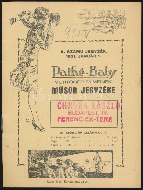 1931 Pathé-Baby vetítőgépek filmjeinek műsor árjegyzéke, 14p https://www.darabanth.com/hu/322-Gyorsarveres/322.0/Festmeny-mutargy-papirregiseg-egyeb/Nyomtatvanyok~500032/1931-Pathe-Baby-vetitogepek-filmjeinek-musor-arjegyzeke-14p~II1784976